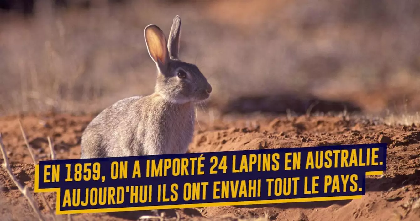 Imaginez deux secondes. Il y a 163 ans, on introduisait une vingtaines de lapins en Australie provenant d'Angleterre. C'était le jour de Noël 1859, et ces lapins étaient un cadeau pour Thomas Austin, un colon anglais qui voulait tout simplement des petits lapins dans son jardin de colon en Australie. En quelques années ils furent des milliers et aujourd'hui, ils pullulent à travers tout le pays au point d'être classée espèce invasive. Alors vous me direz, boaaaaah des lapins c'est mignon c'est pas bien grave d'en avoir beaucoup. Eh bien si parce qu'ils bouffent tout et n'importe quoi et flinguent aussi les végétaux. Une vraie saloperie sous ses airs d'animal mignon.
