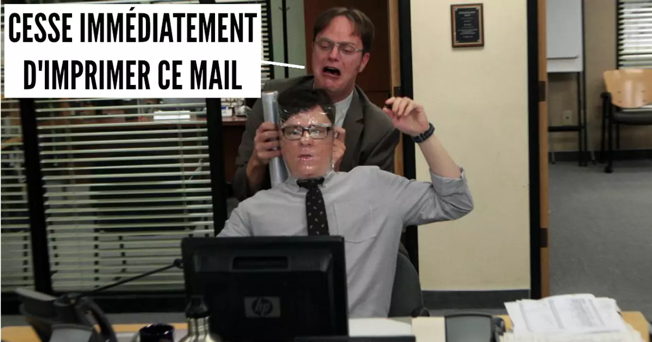 C'est tout con mais ça arrive encore trop souvent. Et ça ne sert globalement pas à grand chose (surtout si c'est pour imprimer les échanges de mails avec tes amis concernant le choix du cadeau en commun pour un ami tierce et qu'il en a pour 25 pages de règlements de compte). Si jamais tu dois vraiment le faire, essaie à la rigueur d'imprimer en recto-verso OU OU OU de choisir des amis qui envoient moins de mails.