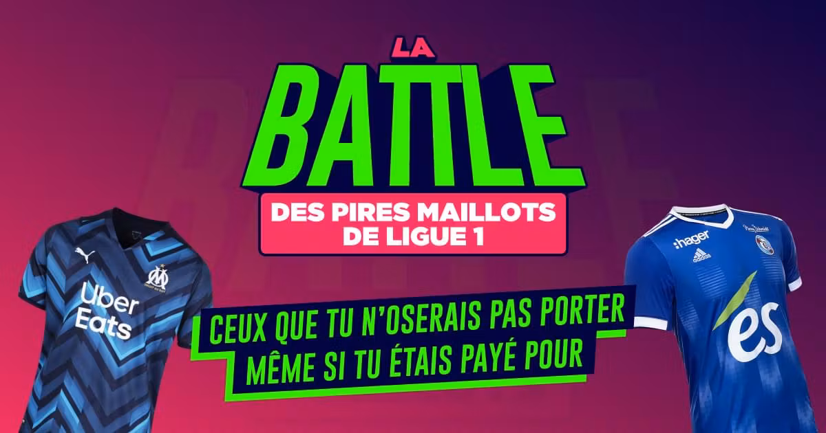 Qui dit "nouvelle saison de Ligue 1" dit "nouveaux maillots" ! Et encore une fois, les 20 meilleurs clubs de France nous ont servi en originalité et envie de vomir. Alors plutôt que de faire appel à la Cristina Cordula de notre rédaction pour noter ces horreurs, on s'est dit qu'on allait vous laisser l'opportunité d'élire le maillot que vous n'oseriez jamais porter, même si on vous donnait le salaire de Messi pour ça. Allez c'est parti, à vous de voter pour le maillot le plus moche. Et si vous êtes sages, on fera un top avec votre classement. Promis.