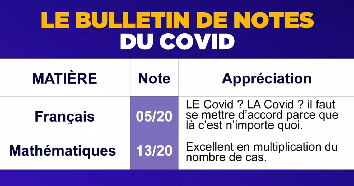 Appréciation du professeur : « LE Covid ? LA Covid ? il faut se mettre d'accord parce que là c'est n'importe quoi. »