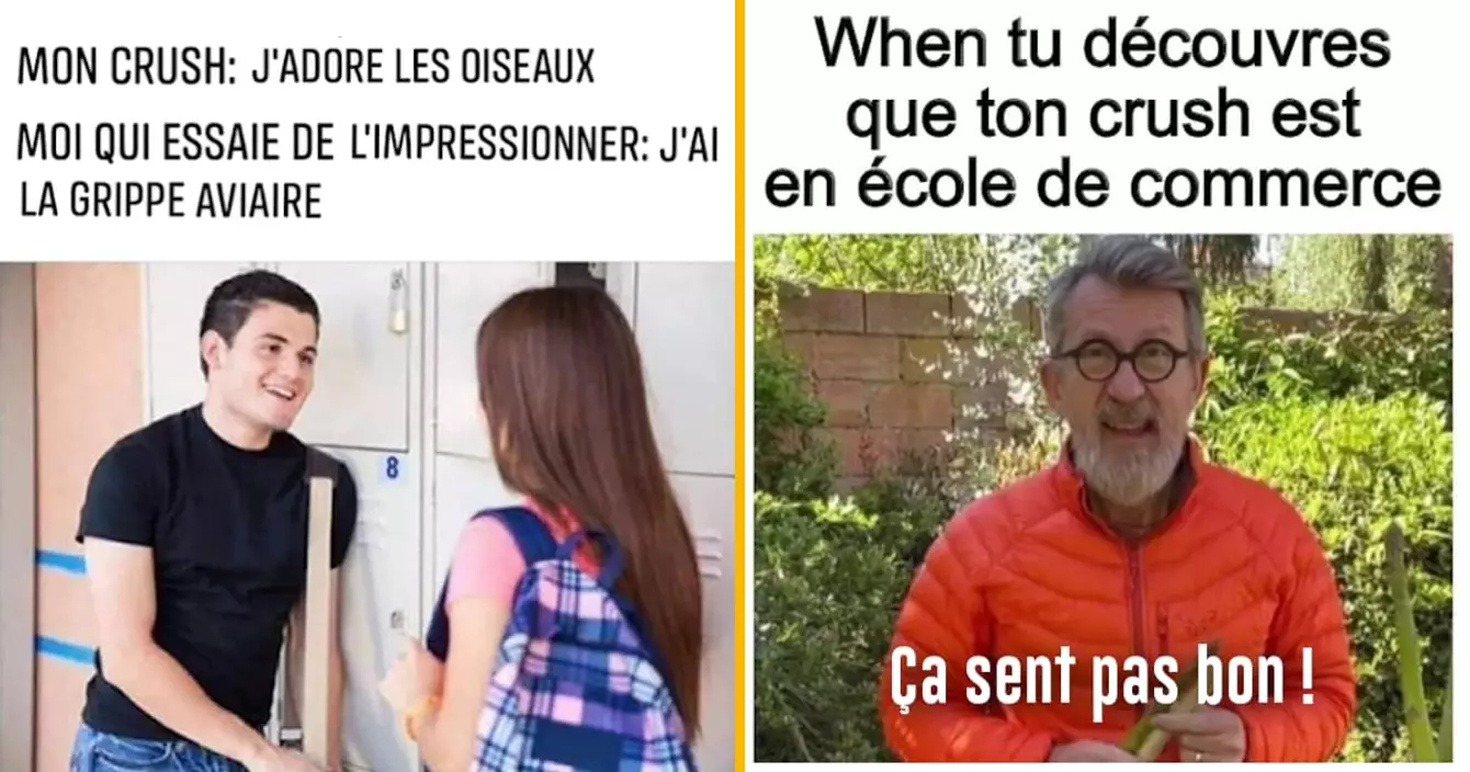 Que tu aimes ce mot ou non, tu sais très bien ce qu'est un crush et tu en as probablement déjà eu quelques uns (voire des dizaines si t'as un p'tit cœur sensib'). Tu sais aussi que rien n'est plus pareil quand tu parles à cette personne ou que tu penses à elle, et ça peut même te rendre totalement teubé. Forcément, ça a inspiré des tas de memes, alors on vous en met quelques uns qui nous ont fait rire. Merci aux memeurs, et abonnez-vous aux différents comptes insta si vous voulez plus de memes.