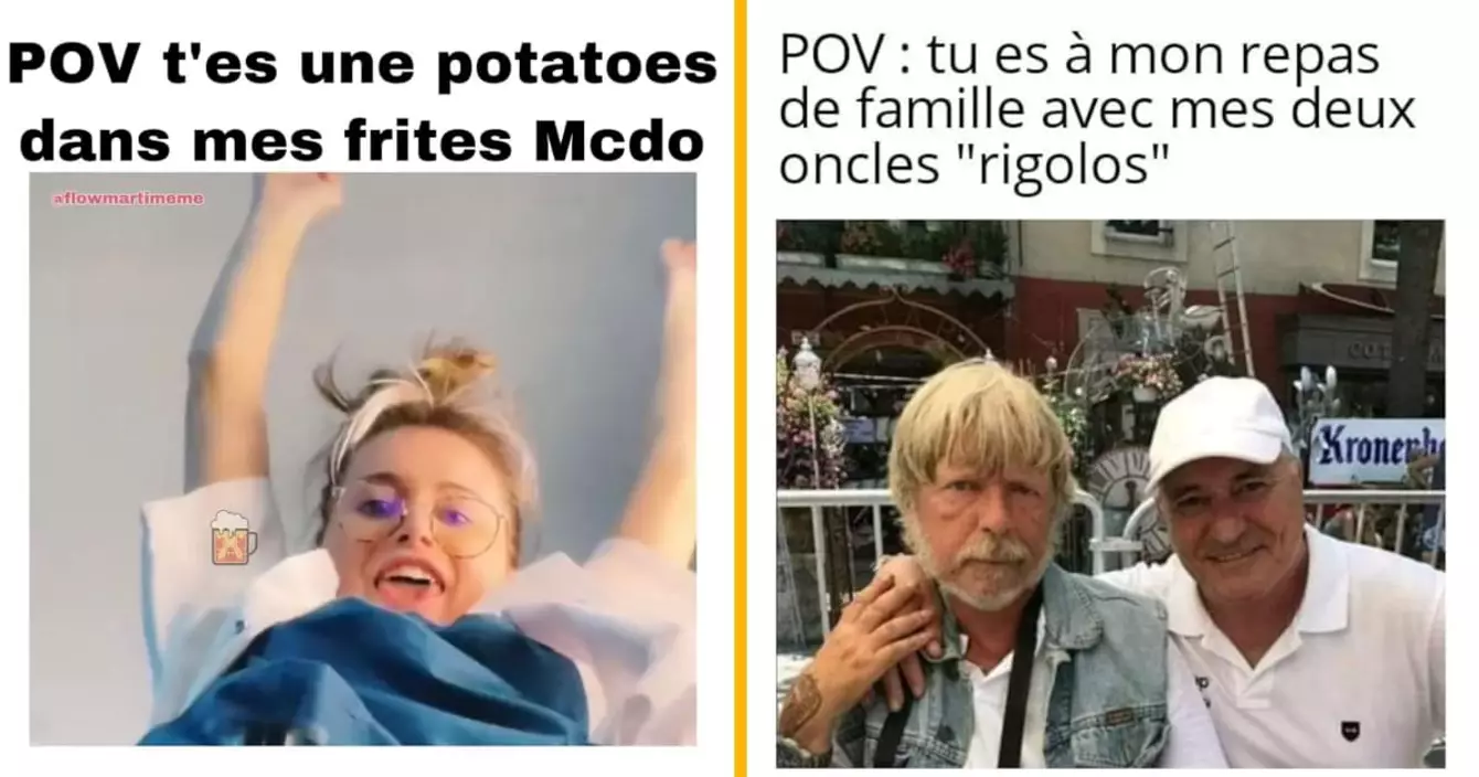 Ces présentations étant faites, vous pouvez maintenant toutes et tous regarder les memes suivants qui commencent par « POV » et vous mettent dans une position subjective du plus drôle effet. Vous êtes vraiment très très vieux et vous n'avez même pas compris le mot « meme » ? Alors nous ne pouvons plus rien pour vous. Les autres, amusez-vous bien.