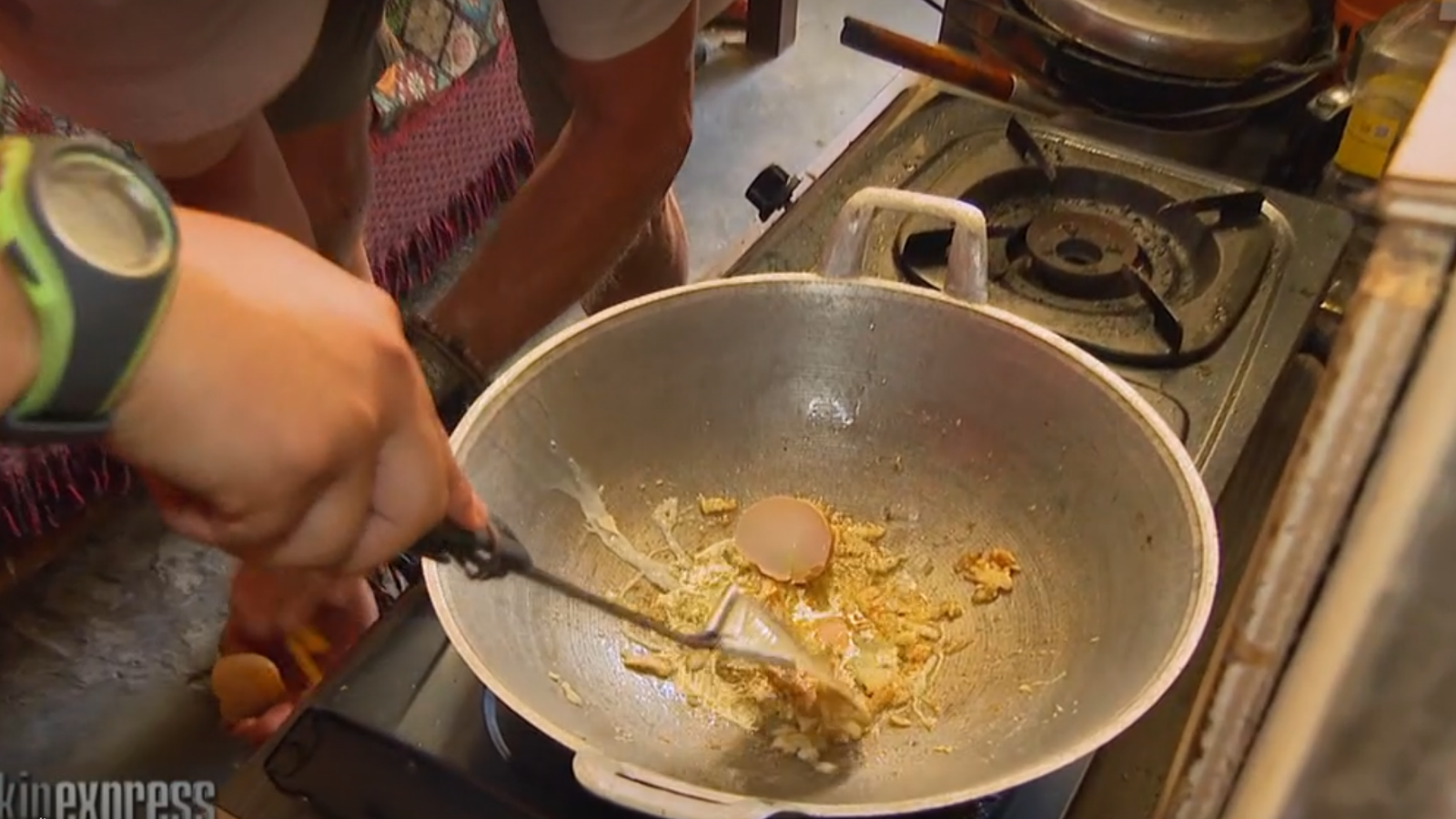Ok, donc après avoir fait la course (avec un panier qui pue pour une équipe), mangé des piments quand la balise a sonné (soit, beaucoup de piments), s'être bavé et vomi dessus, les candidats qui arrivent devant Stéphane doivent se rendre chez un habitant pour cuisiner un « Nasi goreng », un plat à base de riz, d'œuf frit, de concombre et de sauce soja, le tout en taxant les placards des habitants. Sympa.