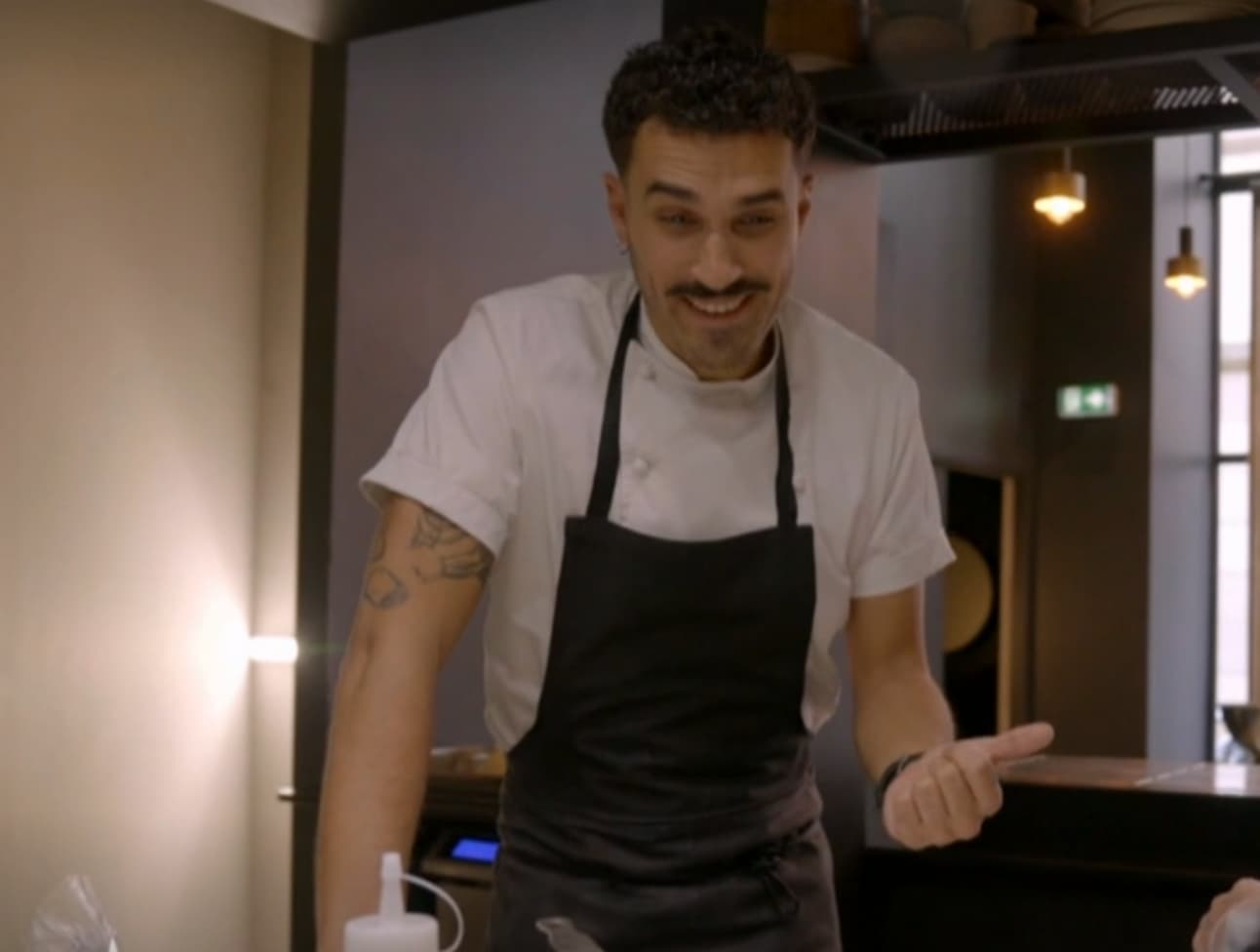 Arnaud, 19 ans, belge par choix (dans la mesure où on a le choix de son lieu de naissance) qui se fait déjà engueuler par Philippe parce que son poste de travail n'est pas bien rangé et propre. Le pauvre s'embrouille en expliquant son plat, il est tout jeune et impressionné par Philippe (qui agite un couteau de boucher au dessus de sa tête en hurlant « range ton poste de travail petit c*n !! », y'a peut-être un lien).
