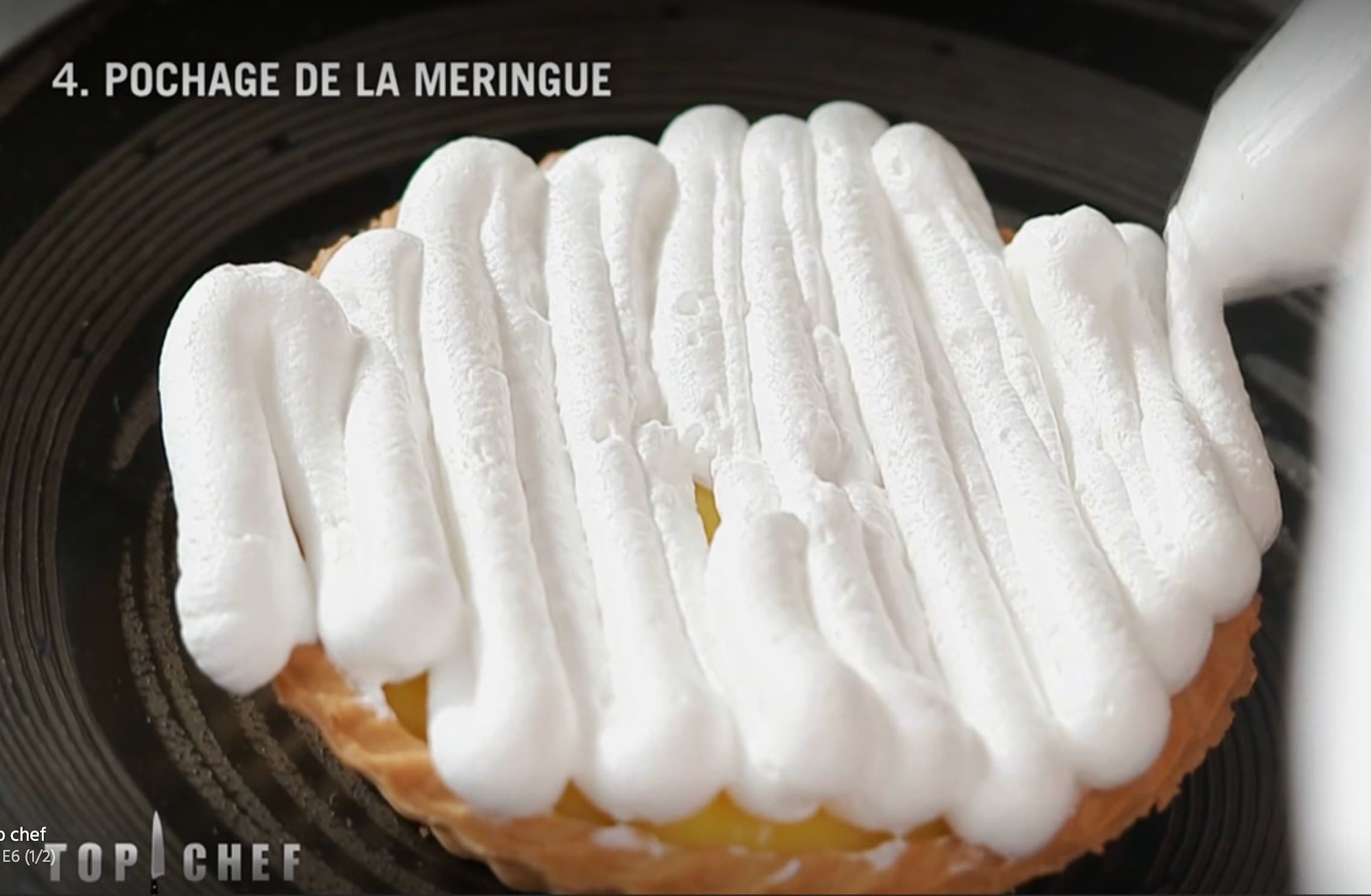 Ils font donc un sirop avec beaucoup de sucre et des glaçons qu'ils incorporent ensuite dans des blancs d'oeuf, ce qui est censé donner une meringue (perso j'étais loin de me douter qu'on faisait ça comme ça), ensuite ils doivent la poser sur leur tartelette et là il se passe de drôles de choses, ça rend pas comme celle de Gilles Gougeon.