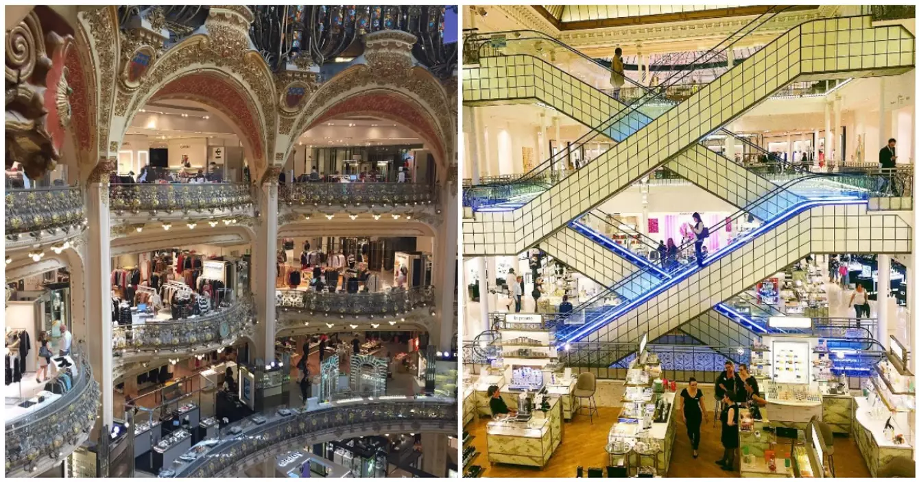 En découvrant les Galeries Lafayette pour la première fois, on ne peut réfréner un petit « waouh » ! D’abord parce qu’on est impressionné par ses 70 000m² de surface de vente, puis par sa magnifique coupole Art Nouveau qui surplombe les cinq étages et leurs magnifiques balcons. Il y a trois bâtiments en tout, dont un exclusivement consacré à la gastronomie, le Lafayette Gourmet et une terrasse sur le toit pour faire coucou aux gens en bas !