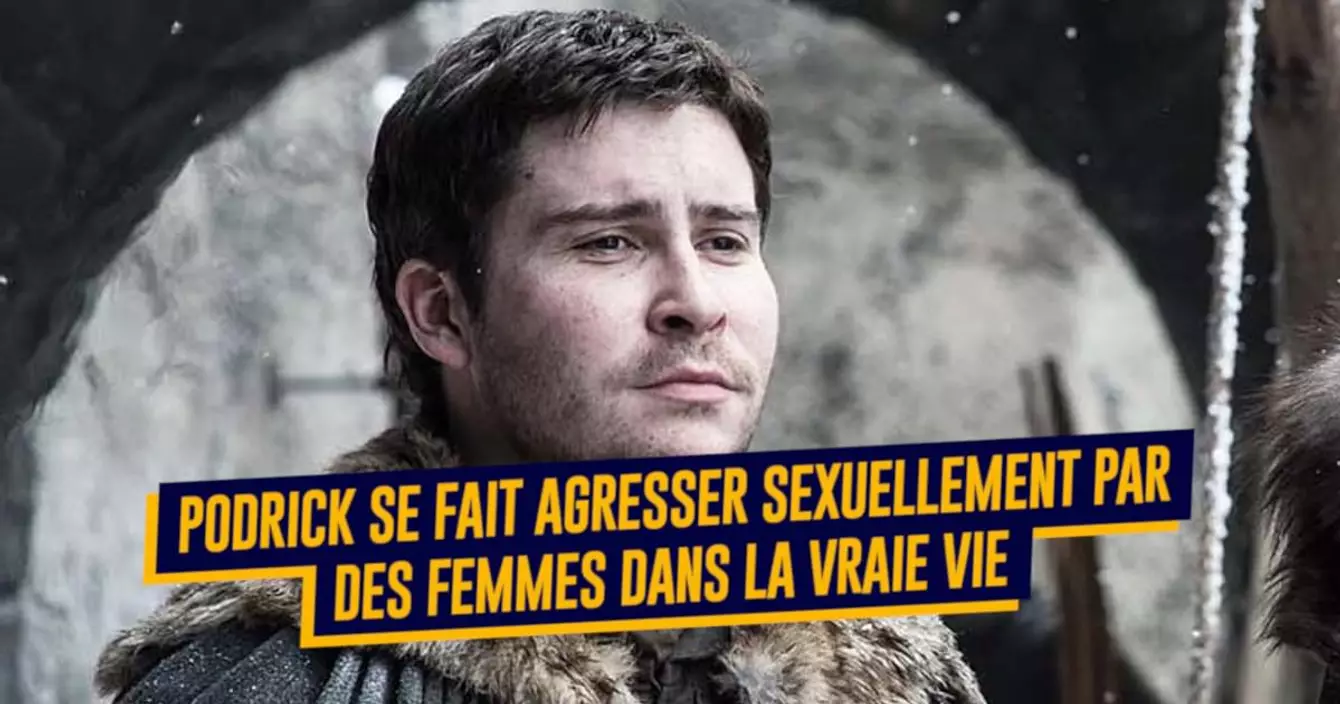 Ressort comique récurrent de la série qui suggère en continu qu'il est un bon coup ultra breuillé, Podrick (Daniel Portman dans la vraie vie) se passerait bien de cette réputation de sex-machine. Parce que dans la vraie vie, c'est un enfer : des femmes n'hésitent pas à lui saisir l'entrejambe comme ça, en public, sans demander, sans consentement. Et il ne sait plus quoi faire pour que ça s'arrête puisque, quand il leur demande de ne pas faire ça, elles ne l'écoutent pas. C'est une agression sexuelle mon Podrick.