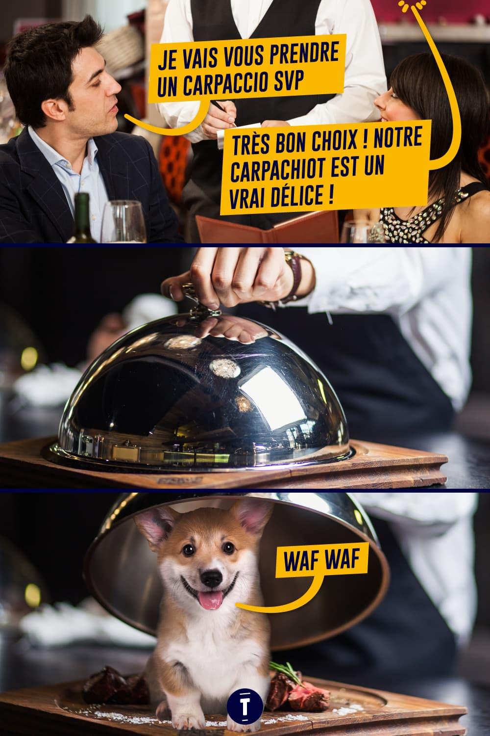 Ces petites tranches de viandes de bœuf crues assaisonnées de citron, d'huile et de parmesan, doivent leur nom à Vittore Carpaccio, peintre italien dont cela reste la plus grande œuvre. Faut dire que tout part d'une coupure de gaz : ne pouvant pas faire cuire une bonne viande qui allait se perdre, il a décidé de la bouffer crue. Pas con le mec, il a rajouté deux trois bricoles pour que ça passe mieux et que ça porte son nom, parce que sinon la paternité du plat de bœuf cru revient à Grugru, homme des cavernes respecté pour sa pudeur et craint par de nombreux dentistes. On est passé à rien de pouvoir commander un Grugru au resto.