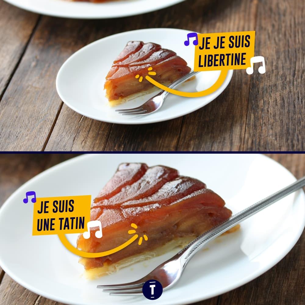 La fameuse tarte renversée tient son nom des sœurs Stéphanie et Caroline Tatin. La légende qui circule sur cette invention, comme quoi ce serait accidentel et que l'une des deux sœurs aurait renversé une tarte normale et qu'on l'aurait quand même servie n'est pas forcément vraie puisqu'on attribue cette version au critique culinaire Curnonsky. Perso je pense que l'une des deux sœurs se tapait le mec de l'autre, du coup c'est parti en embrouille dans la cuisine et hop Caroline a jeté la tarte dans la gueule de Stéphanie, créant non seulement la tarte tatin, mais également l'expression « prendre une tarte dans la gueule ».