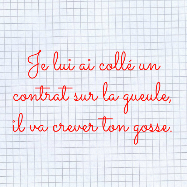 La prochaine fois qu'il lève le doigt je le fous dehors