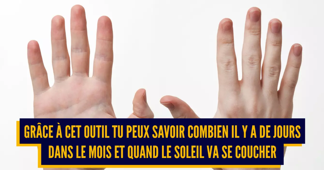 Méthode bien connue, il suffit de serrer les points et de compter les phalanges et le creux entre chaque phalange. La première phalange c'est janvier, le creux, c'est février et ainsi de suite. Donc en janvier ça veut dire qu'il y a 31 jours, en février bon y'a 28 jours donc c'est con mais on sait qu'il n'y en a pas 31 au moins, en mars il y a 31 jours etc.