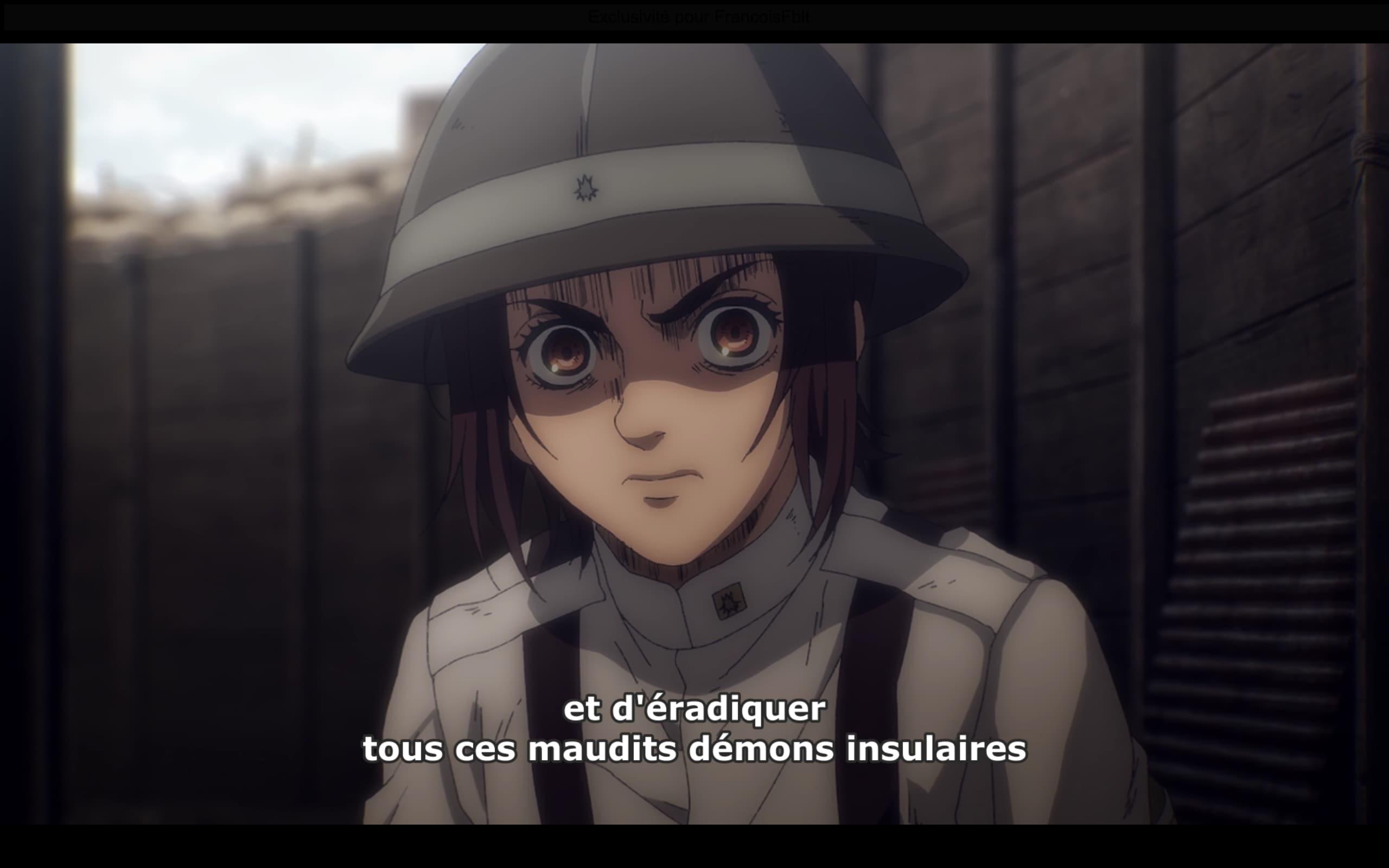 Son acte héroïque lui a sûrement fait gagner des points pour reprendre le poste de Reiner. Denis Brogniart serait fier. Et à travers Gabi, Falco, Sophia et Udo, on nous présente de nouveaux personnages et leur regard sur la guerre. Va-t-on découvrir cette saison à travers leurs yeux ?
