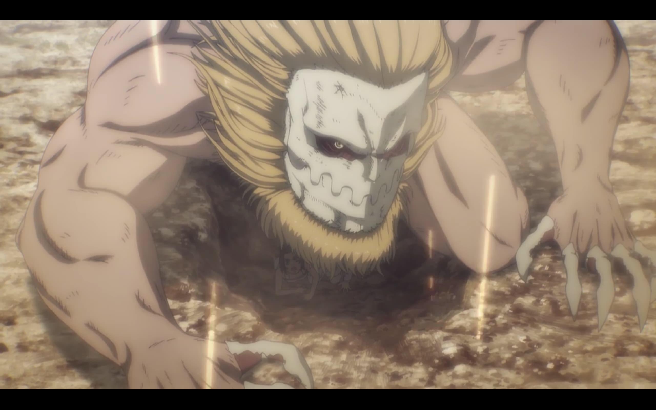 Avec le nouveau studio d’animation (Mappa Studio), les Titans sont maintenant en CGI. Et franchement ça passe crème fraîche 15% de matières grasses, à part pour le Bestial, dont les poils sont devenus statiques hélas. Mais globalement, les corps se fondent bien dans le décor.