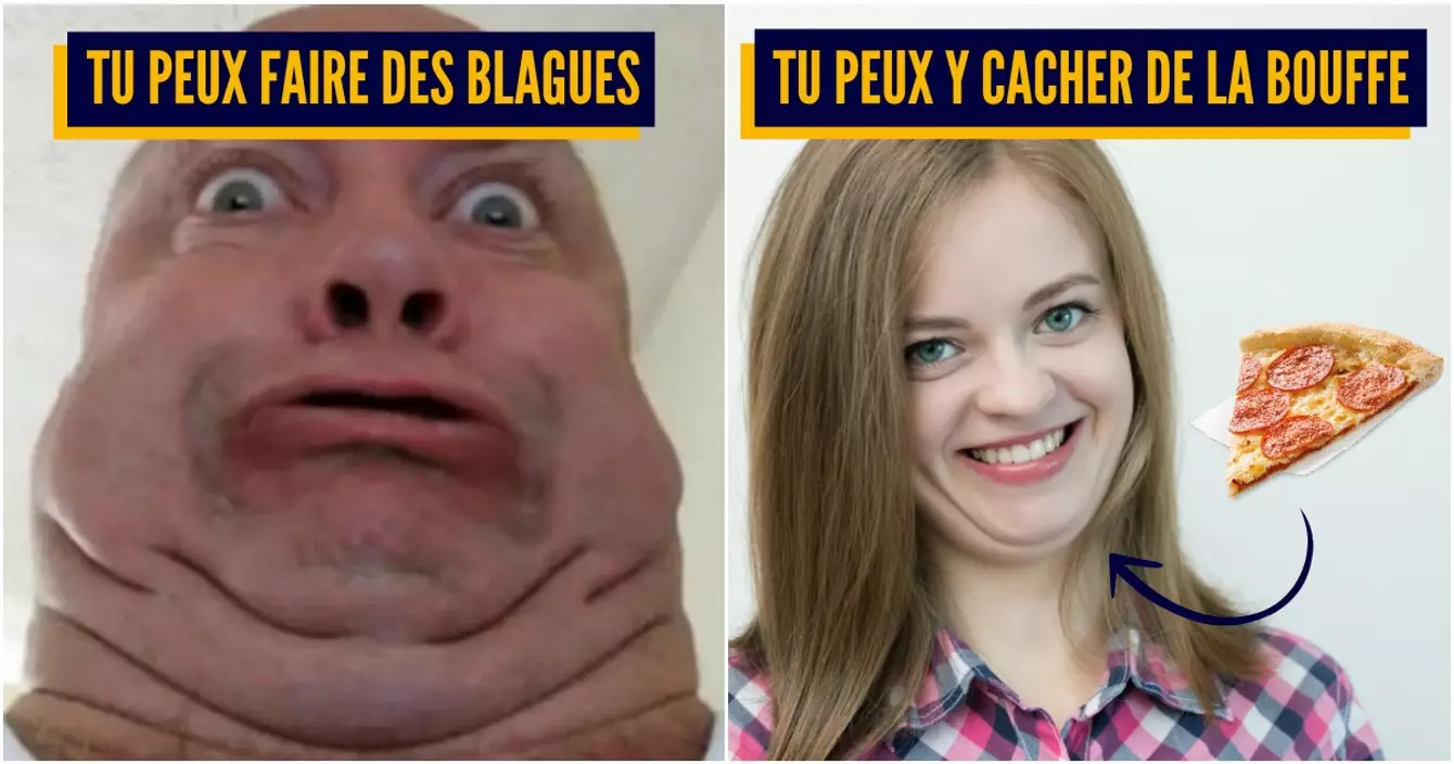 Perso j'ai un double menton et maintenant quand je vais faire mes courses je ne prends aucun sac car je sais que je pourrais ranger ma bouteille de jus multifruits et mes deux carottes dans mon menton. Et en soirée j'ai toujours un part de pizza bien cachée pour 5h du matin.