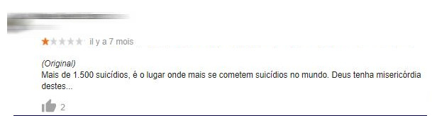 « Plus de 1500 suicides ; c'est l'endroit du monde d'où les gens se suicident le plus. Que Dieu soit miséricordieux avec eux… »