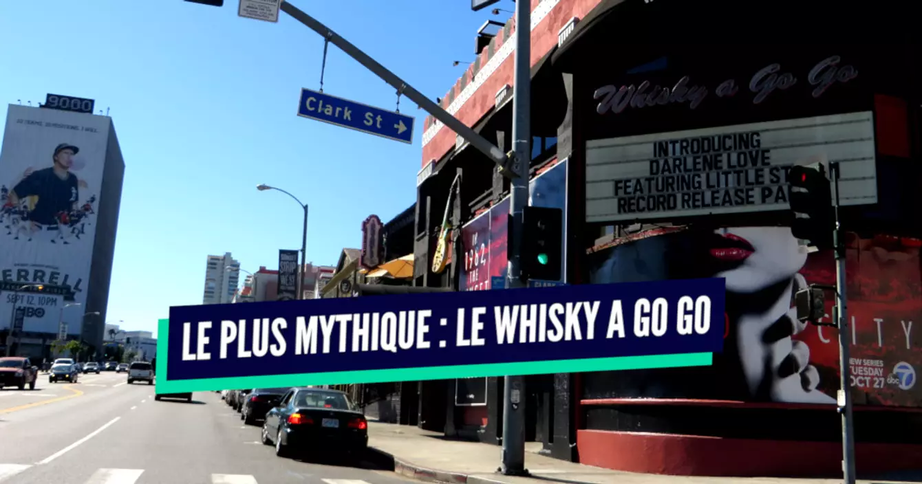 L'une des légendes du Sunset Strip. Ouvert en 1964, le Whisky a Go Go (dont le nom est emprunté à une célèbre boite parisienne) est l'un des premiers clubs des États-Unis où est jouée de la musique live. C'est dans les années 60 que le lieu commence à véritablement devenir mythique, quand Jim Morrison et les Doors s'y produisirent, avant de se faire virer à cause des paroles jugées scandaleuses de la chanson The End. Plus tard, après une période de fermeture, entre 1982 et 1986, le Whisky se montre beaucoup plus coulant moralement parlant et accueille la fine fleur du heavy metal. Mötley Crüe fait partie de ses plus fidèles résidents. En 2019, il accueillait en exclusivité le groupe Kiss. Attention néanmoins, car l'entrée est payante. Y compris quand aucun groupe particulièrement célèbre ne s'y produit (10 dollars).