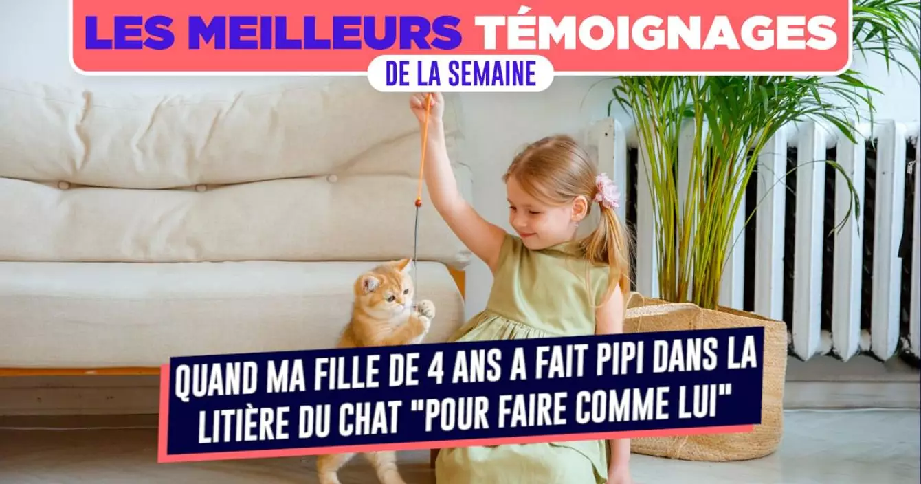 « Ya pas très longtemps, trop pressée d'aller aux toilettes, les toilettes étant occupées par sa grande sœur elle a fait pipi dans la litière des chats mdrr et elle est venue me l'annoncer comme si c'était normal mddr »