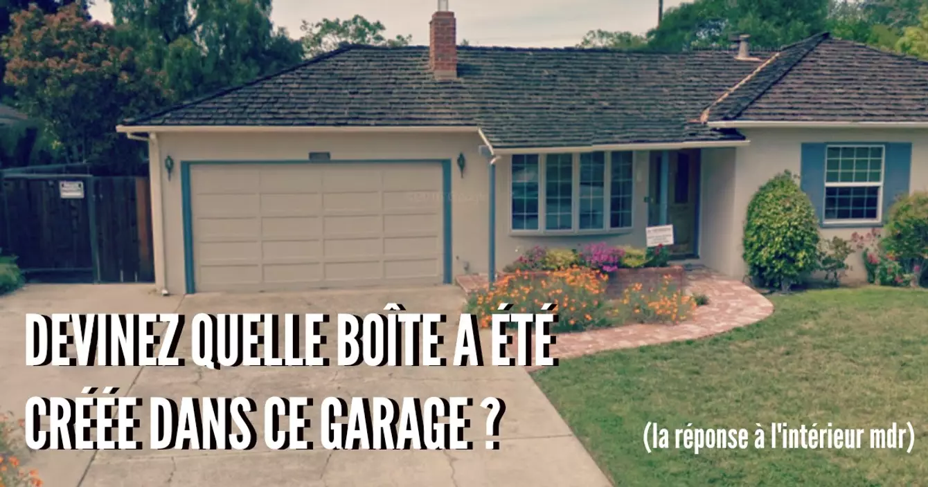 Commencer sa boîte dans un garage, en voilà une idée ! D'ailleurs Topito a été lancé dans un garage, pareil pour le chocolat Milka et les fenêtre Velux, et même il paraît que quand Dieu a créé la Terre il était dans son garage aussi. Et puis aussi plein d'autres trucs.