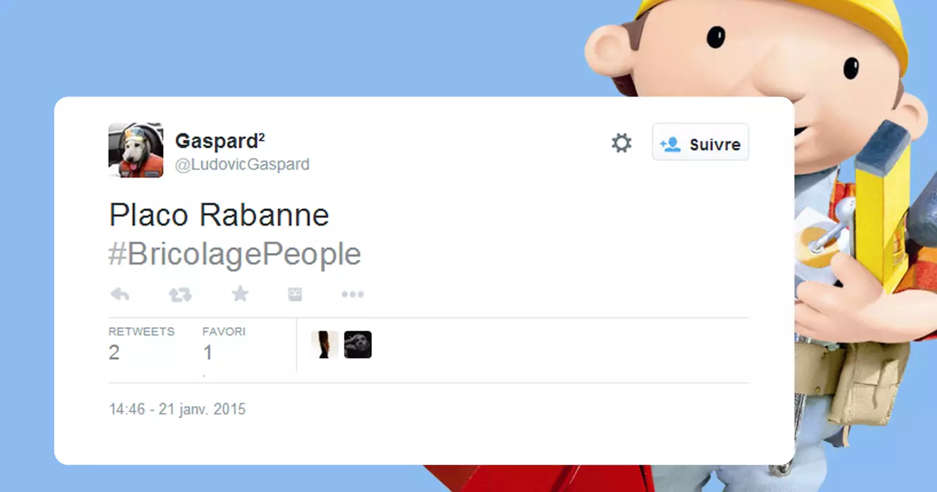 La twittos @SamParleBien a encore frappé. Avec son acolyte @JeanToukour, ils ont lancé le hashtag #BricolagePeople, le but est simple : faire rimer les célébrités avec l'univers du bricolage. Attention, c'est très con.