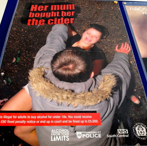 Campagne d'affichage de la National Health Security au Royaume-Uni qui a duré de 2005 à 2007 avant d'être retirée (ENFIN) suite à une pétition. Parce qu'il faudrait pas confondre entre prévention contre l'alcool et prévention contre le viol.