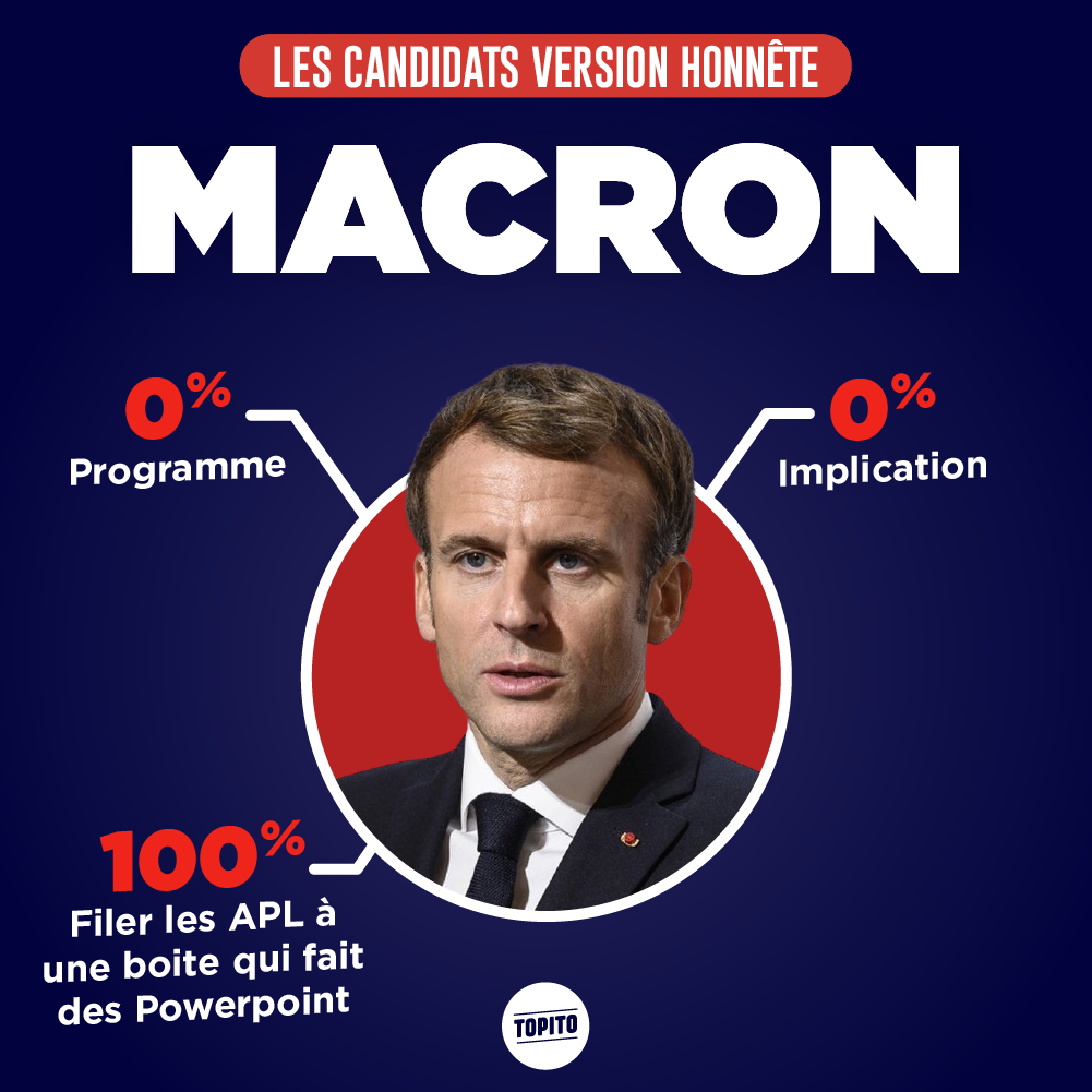 A quelques jours du premier tour de la présidentielle, il était plus que temps qu'on vous brief sur les programmes des candidats. Inutile après ce top de vous renseigner davantage, on a vraiment résumé les infos les plus importantes et ça vous suffira amplement pour vous forger un avis de qualité. Allez bisous.