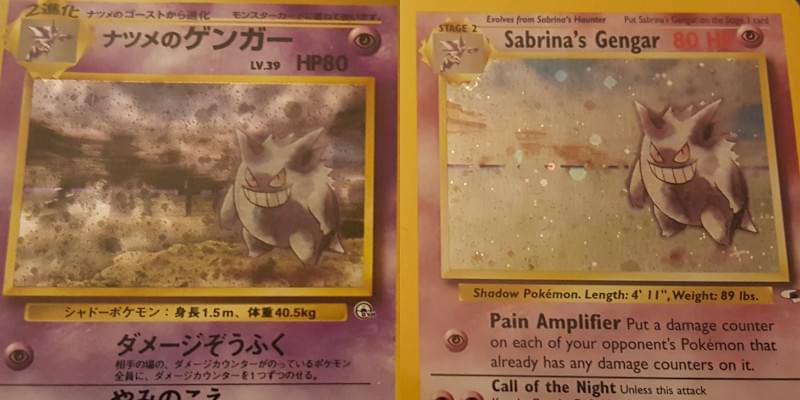 Sur cette carte originale du Pokémon Ectoplasma, on voyait clairement un cimetière en arrière plan avec plusieurs croix chrétiennes, ce qui peut être quand même assez glauque sur une carte de jeu pour enfants. Histoire de régler le problème on a donc recouvert le dessin avec un ciel étoilé à la con qui n'a plus vraiment de sens puisqu'on pourrait alors croire que c'est un genre de Pokémon de l'espace et pas un Pokémon spectre, ce qui est complètement con. Respectent rien ces enfoirés.