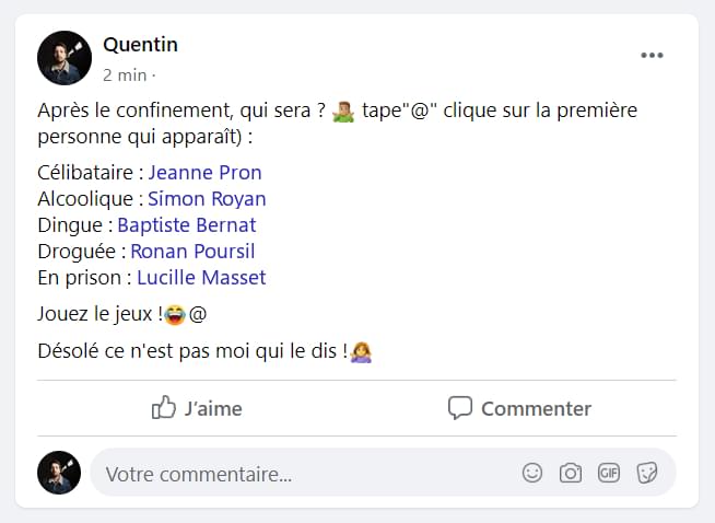 Maintenant vous connaissez les gens à virer de vos amis Facebook. Pour rester dans le thème, allez voir notre top des tarés sur Facebook, les pires statuts de mamans sur Facebook ou encore nos souvenirs honteux des débuts de Facebook. On est tous passé par là.