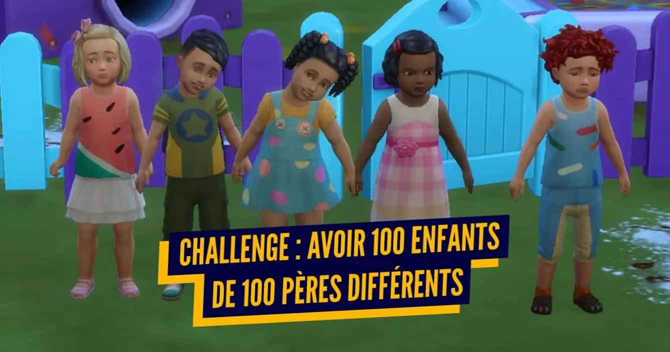 Le challenge que s'arrachent tous les YouTubeurs consiste à rendre possible l'impossible : faire procréer votre jeune femme Sim (célibataire) 100 fois, avec 100 pères différents. Sachez que cette mission, si vous l'acceptez, comprend des règles extrêmement strictes. Il est impossible pour votre simzoulette d'avoir recours à une nounou, d'avoir recours à quelconque code triche ou encore ma préférée : vous ne pourrez pas faire grandir vos enfants à moins qu'ils obtiennent une moyenne de A à l'école, parce que le monde appartient aux Sims qui se lèvent tôt.