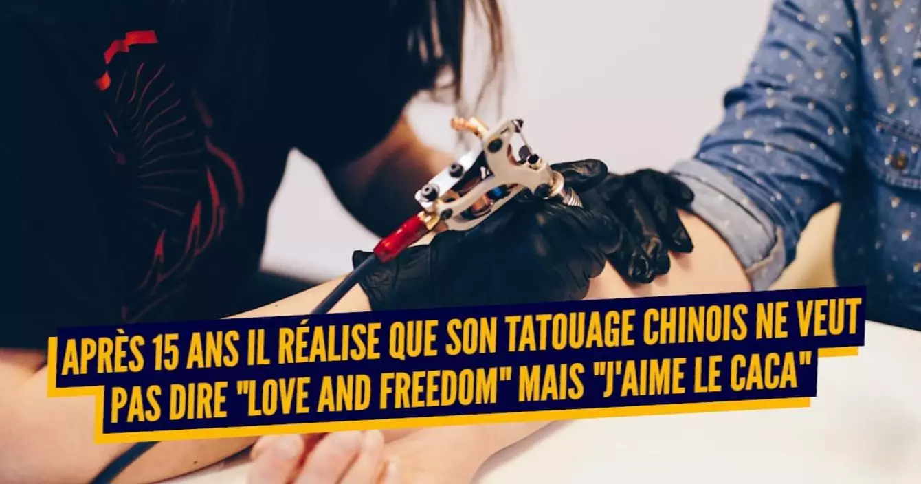 L’analyse de Topito : Le pauvre client s’est effectivement rendu compte après quinze ans que son tatouage de deux idéogrammes chinois ne voulait pas dire « Love and Freedom » mais « J’aime le caca », ce qui n’a pas du tout la même signification. C’est dommage.