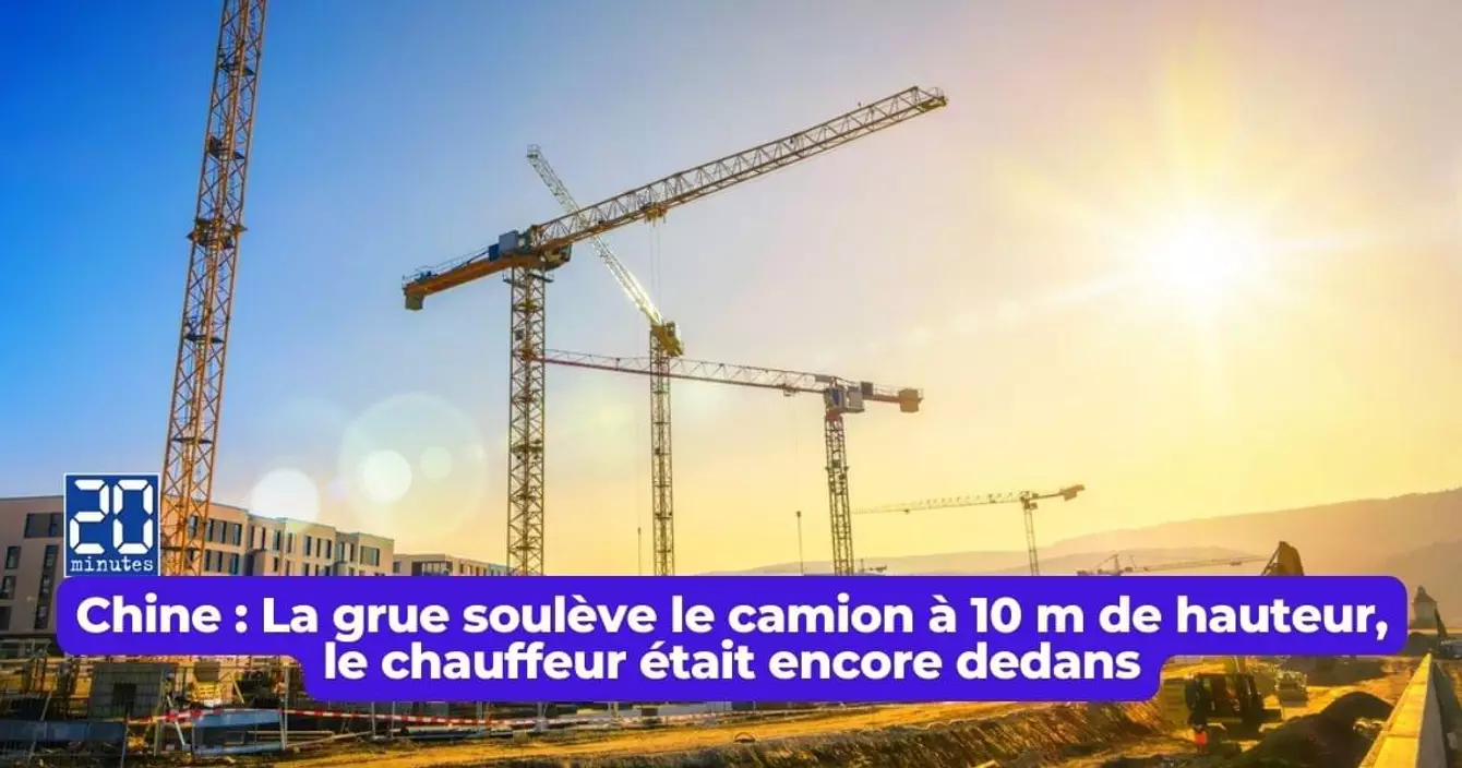 Chine : La grue soulève le camion à 10 m de hauteur, le chauffeur était encore dedans