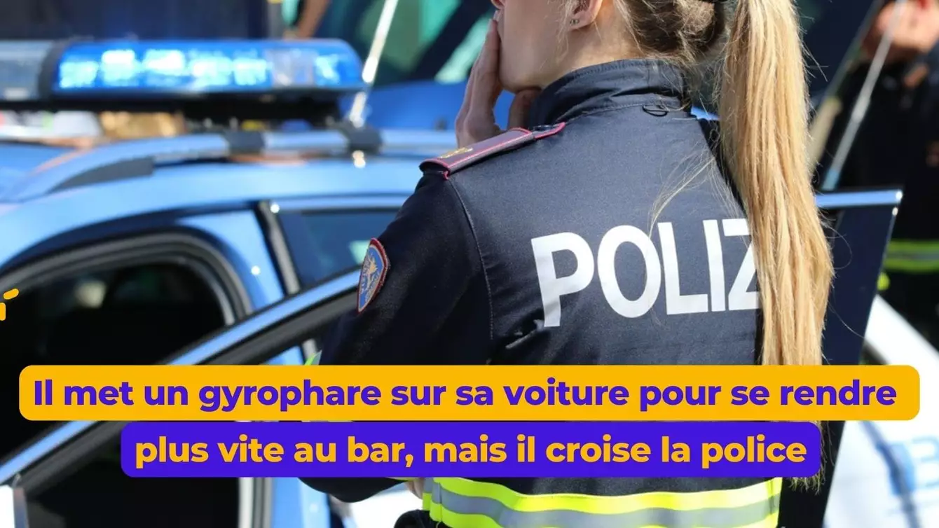 Il met un gyrophare sur sa voiture pour se rendre plus vite au bar, mais il croise la police