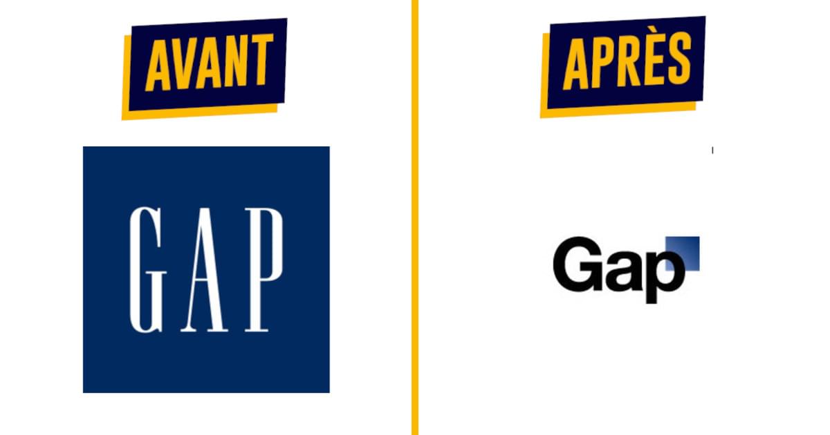 En 2010, la marque GAP a voulu se refaire une tite beauté en changeant son logo, bien qu'elle n'en avait pas trop besoin. Le problème c'est que rien n'allait dans le nouveau design qui ne correspondait ni à la typo ni aux couleurs de l'ancien logo. Ce changement a suscité la colère des clients (il en faut peu) et six jours plus tard, GAP revenait à l'ancien modèle. Rapide et efficace.