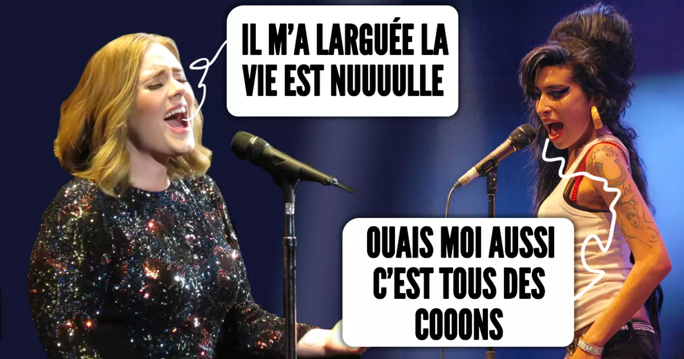 Toutes les chansons d'Amy Winehouse parlent de détresse amoureuse et/ou d'addiction à la drogue. Prenez le début de Back to black : « Il n'a pas pris le temps de regretter / Sa bite encore humide / Toujours la solution de facilité / Et moi bien défoncée / Les larmes sèches / Je me retrouve sans mon mec. »
