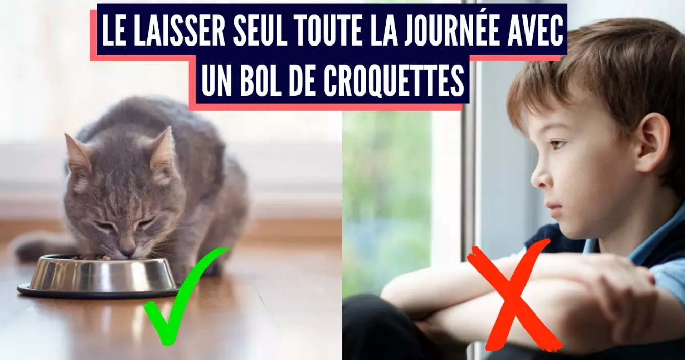 Le chat jouit d'une certaine indépendance. S'il réclame beaucoup d'affection il est toutefois capable de s'arranger de sa solitude sur une petite durée, ce que l'enfant n'est absolument pas capable de faire. Pas foutu de se nourrir seul, l'enfant peut être exposé à ne graves dangers s'il est abandonné trois jours chez toi pendant que tu pars en week-end. Encore une preuve irréfutable qu'il est plus pratique d'avoir un chat qu'un enfant.