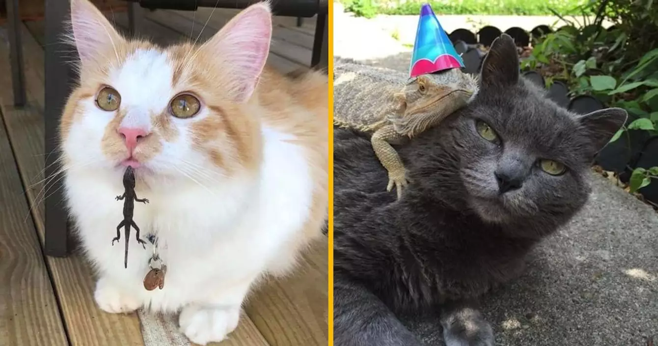 S'il y a bien deux espèces animaux qu'on ne s'attend pas à voir traîner ensemble, ce sont les chats et les lézards. Ils n'ont rien à voir l'un avec l'autre, mais ils sont parfois amenés à se rencontrer, et ça peut donner soit des grosses fights violentes, soit une amitié trop mignonne. On vous a mis des photos des deux situations, dans tous les cas c'est assez drôle.
