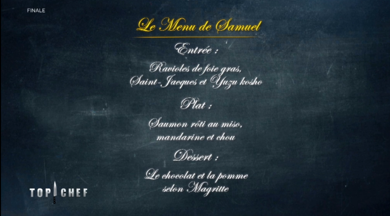 Mais c'est finalement Samuel qui l'emporte. Une victoire méritée, pour une fois la prise de risque en finale a fonctionné. Bravo aux deux candidats, c'était du haut niveau.