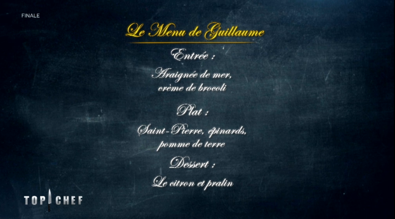 Et voilà les copains, on y est ! LA FINALE. La grande finale de Top Chef après des semaines de concours, de cuisine, de Bretagne, de Japon, de Merouane, de gifs, de larmes, de sang, de foin et de chefs. Ça se joue entre deux gaillards, Samuel et Guillaume (il est breton). Comme d'hab, ils seront aidés pour la dernière épreuve par tous les anciens candidats. Mais allez, pas le temps de niaiser c'est parti !