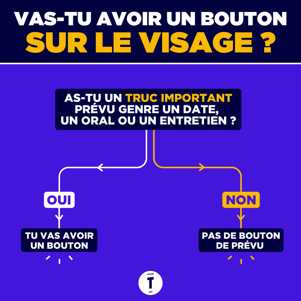 Et allez, t’as encore mangé un tacos 12 viandes avec supplément frites, supplément cheddar, supplément saindoux, le tout en plaçant ton visage dans un pot d’échappement et paf, comme de par hasard, tu as un bouton. Non vraiment, ça n’a rien à voir avec ton hygiène de vie, t’inquiète.