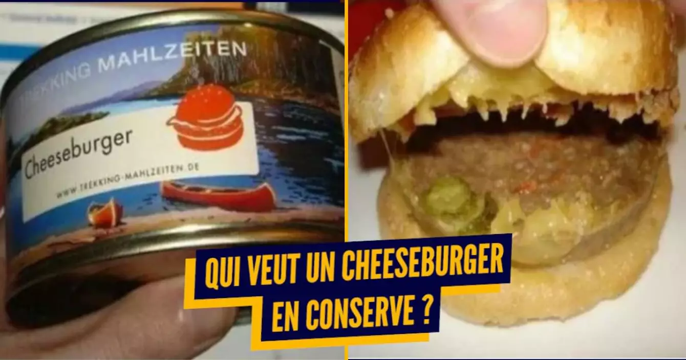 Tu croyais que les pires hamburgers que tu avais mangés étaient ceux de ta cantine au collège ? Eh ben regarde la gueule de ce burger en conserve. Oublie toute notion de plaisir. C'est très probablement le repas qu'on sert aux gens qui ont eu la malchance de se retrouver en enfer. Bouffe-moi ça Hitler.