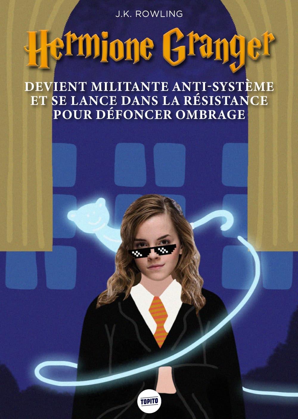 Je sais pas si vous connaissez l'univers d'Harry Potter, c'est des livres et des films pas très connus sur un sorcier un peu débile qui veut en permanence jouer au héros. Je pense que ces oeuvres seraient bien plus connues et appréciées de tous et toutes si le personnage principal était Hermione, la pote surdouée d'Harry. En plus d'être un petit génie, elle est drôle, gentille, courageuse et super débrouillarde. On vous montre ce que ça donnerait en couvertures !