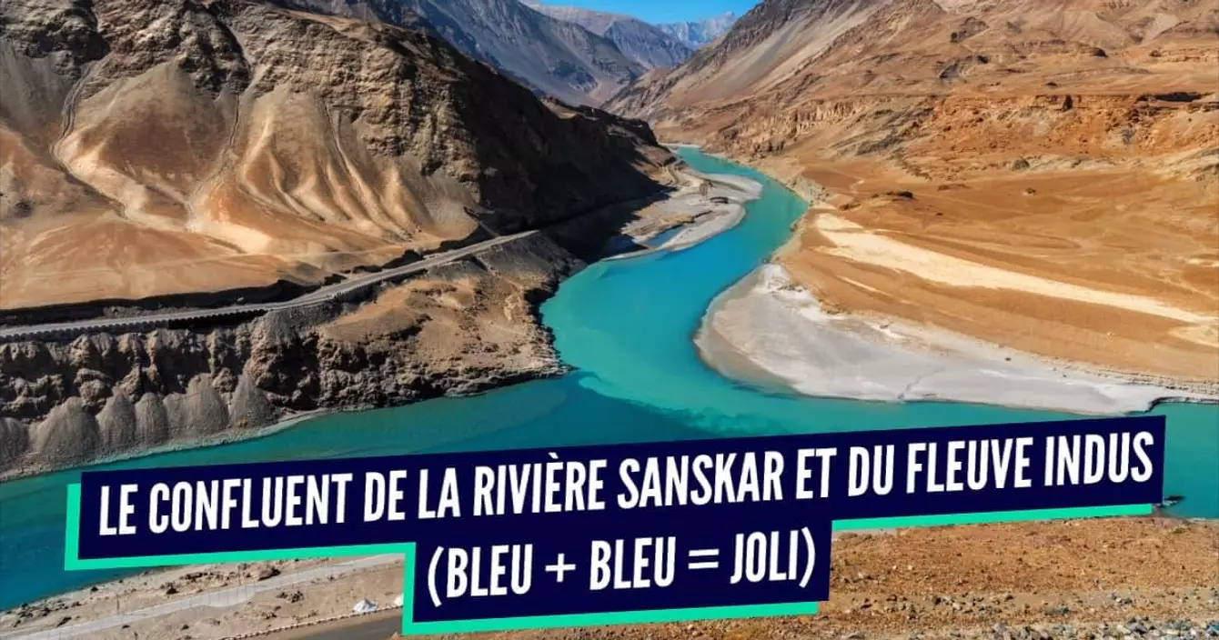 Le confluent de la rivière Sanskar et du fleuve Indus en Inde