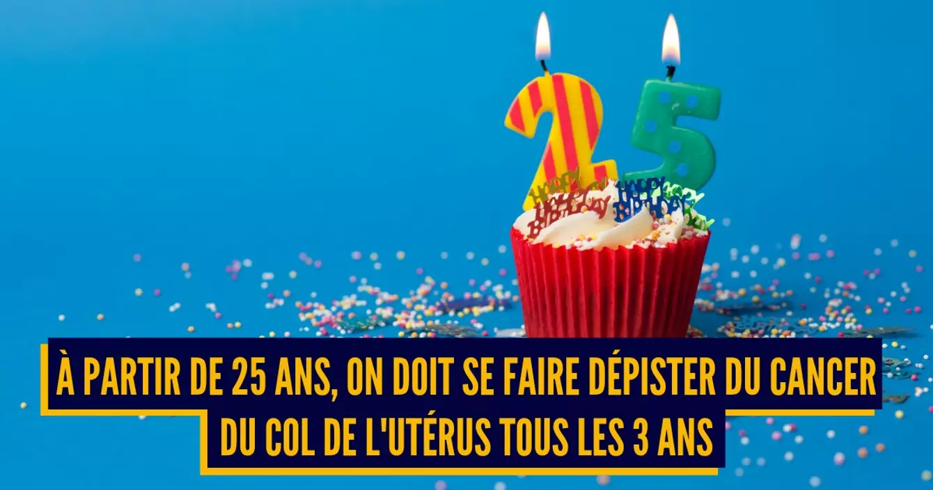 - Le dépistage du cancer du col de l'utérus. Le premier frottis est à faire à 25 ans et à réitérer tous les trois ans jusqu'à 64 ans. C'est du moins ce que recommande l'InCa (Institut national du cancer). Ce dépistage est gratuit. Entre 50 et 64 ans il peut être effectué tous les 5 ans.