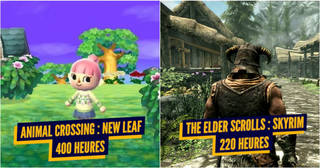 Bon là c'est un peu particulier parce que, étant une simulation de vie (bien édulcorée), Animal Crossing n'est a priori pas le genre de jeu qui se « finit ». Mais si on veut obtenir tous les objets présents dans New Leaf, il faut en moyenne passer près de 400 heures à jouer. Je sais pas qui fait ça, mais respectons-le quand même.