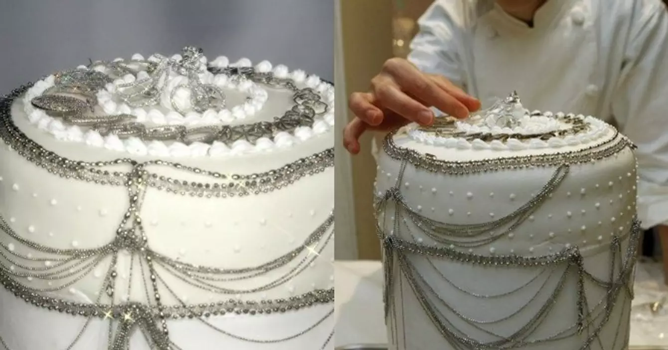 Rien de particulier à signaler pour ce mastodonte du gâteau qui n'est autre que le dessert le plus cher de l'histoire. Après 7 mois de travail pour sa conception/réalisation, un chef pâtissier de Tokyo décréta que son oeuvre serait vendue à ce prix-là. Il est orné de 223 petits diamants situés à l'extérieur de la pièce, tout le reste est comestible.
