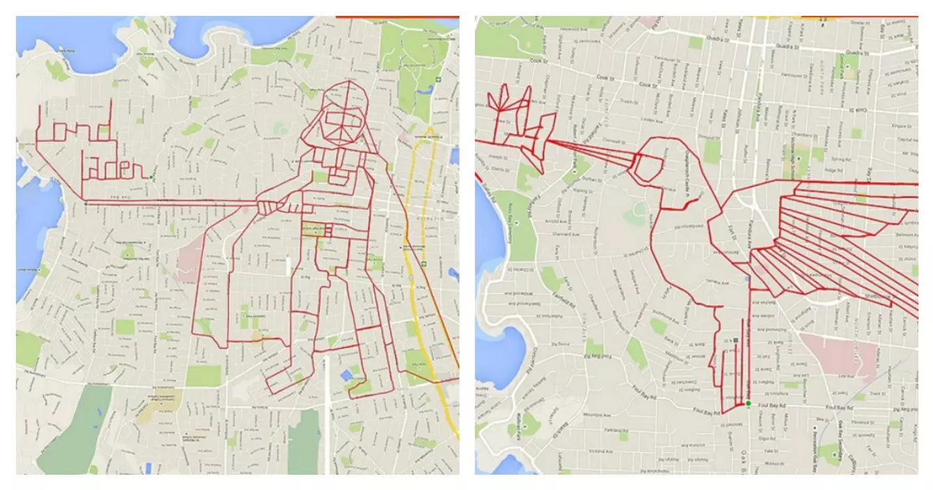 Pas mal sportif, le Canadien Stephen Lund fait 70km à vélo tous les jours. Oui, c'est beaucoup. Et pour faire du sport en s'amusant, le monsieur a eu la brillante idée de faire des dessins géants en utilisant le système de tracking de son appli GPS. Le résultant est, il faut bien l'avouer, relativement bluffant.