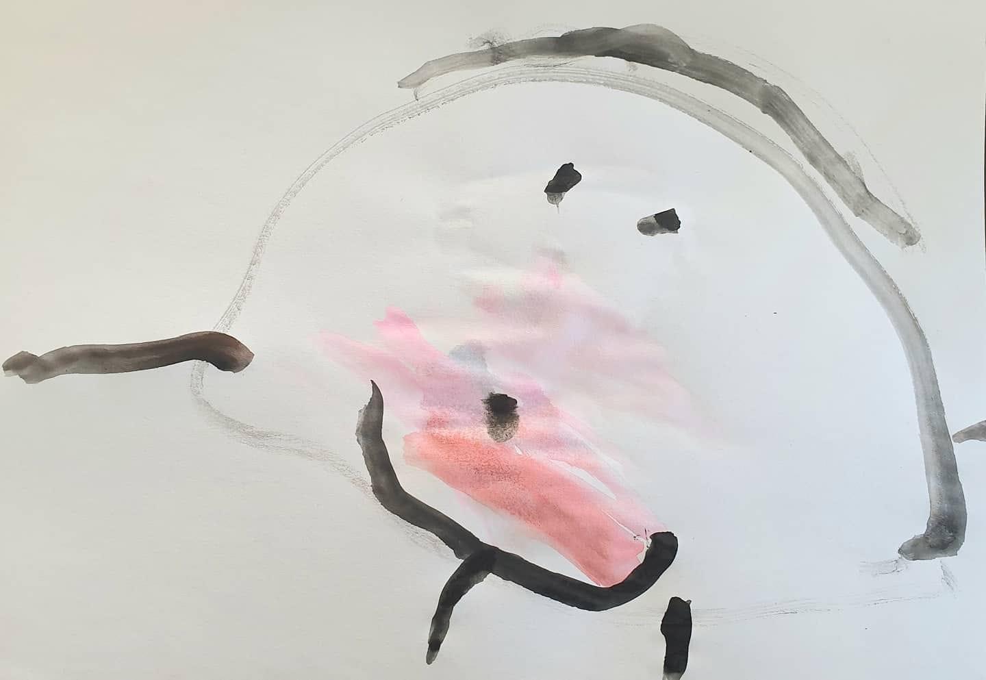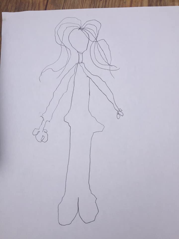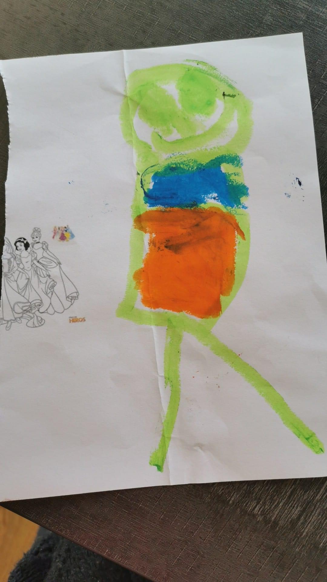 Moi dessinée par mon fils de 3 ans et demi. J'ai donc une Kippa, du rouge à lèvre qui déborde et pas de buste ?