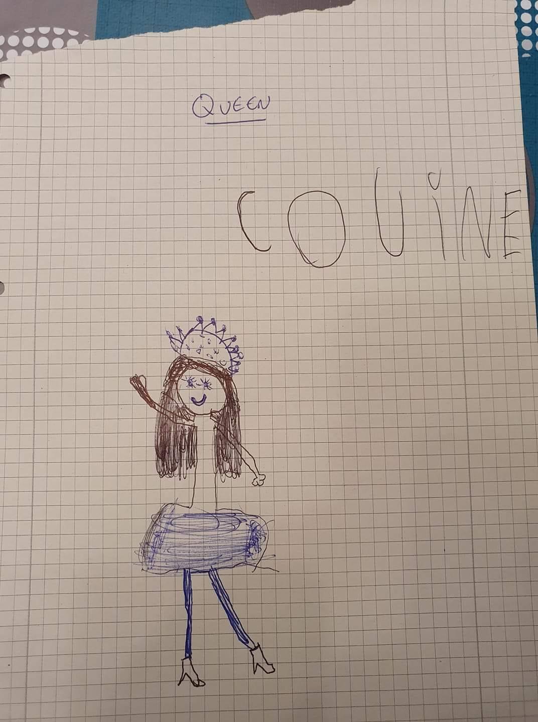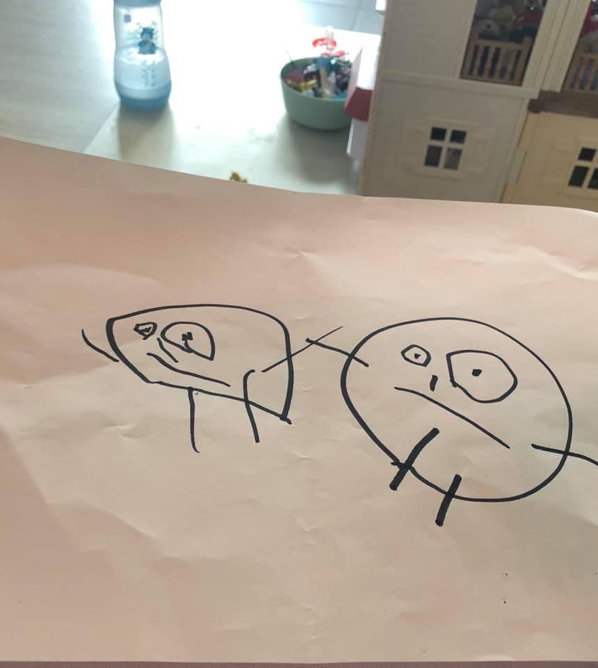 « J'ai demandé à ma fille de dessiner maman et papa … elle a fait un bonhomme bâton et m'a dit »t'as qu'à imaginer que c'est toi ou papa j'ai pas que ça à faire« … elle a 5 ans et est apparemment très occupée ? »