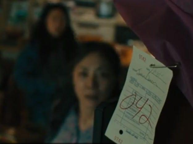 Le Guide du voyageur galactique est un bouquin de science-fiction extrêmement célèbre (surtout aux Etats-Unis) où il est expliqué que le nombre 42 est « la réponse à la grande question de la vie, l'univers et le tout ». Comme cette quête de sens est aussi un peu le thème de Everything Everywhere All at Once, on peut facilement penser que le numéro du ticket n'a pas été choisi au hasard.
