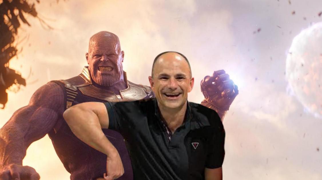 Avec Thanos, le salopard des salopards, juste après la mort de Iron Man.