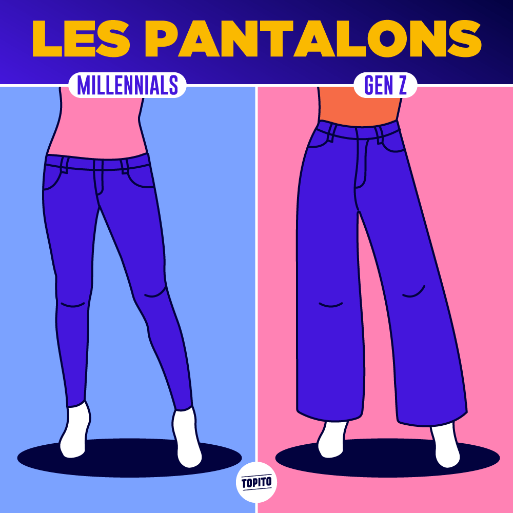 Taille basse chez les Millenials (et jean slim) vs taille haute chez les Gen Z (et jean cargo)